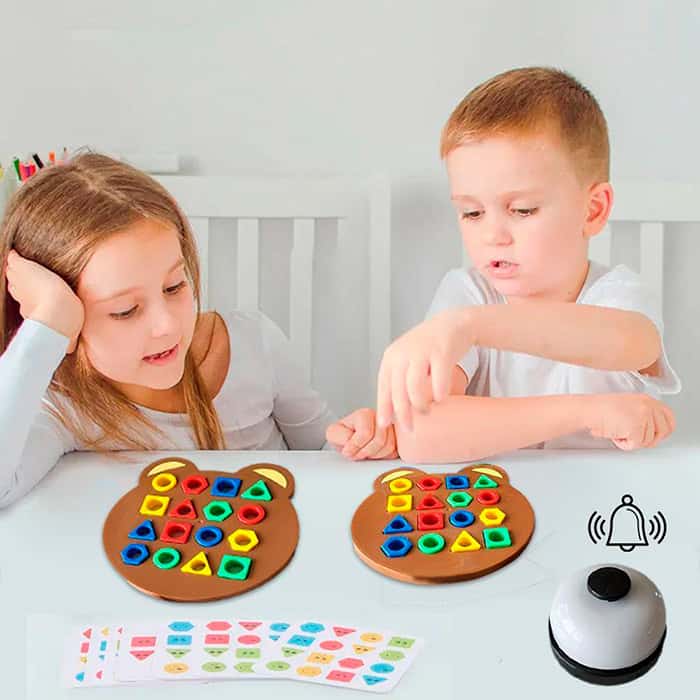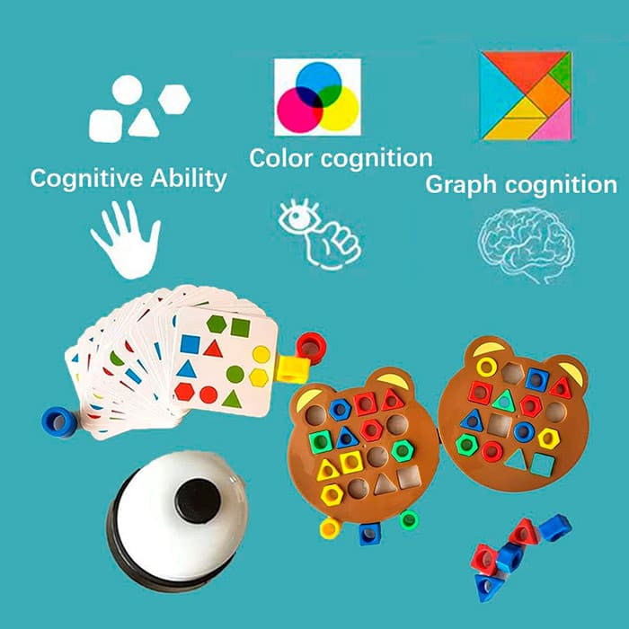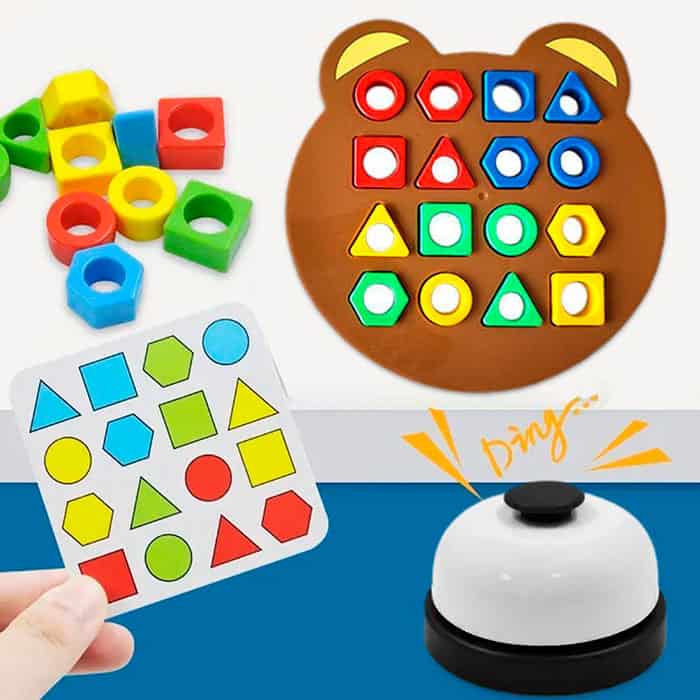 V tomto sete získate 2 vzdelávacie stolné hry. V hre ShapeMatchingGame sa dieťa hravou formou učí o farbách a geometrických tvaroch. V hre SortBoard dieťa použije hračku na učenie nových farieb a ich triedenie do správnych boxov!