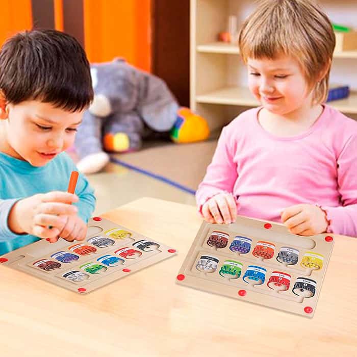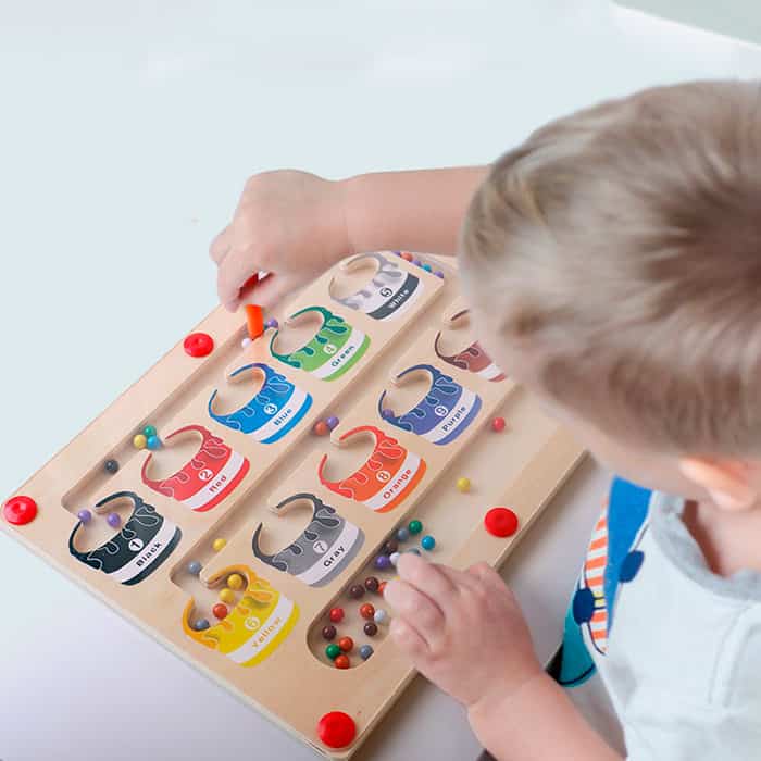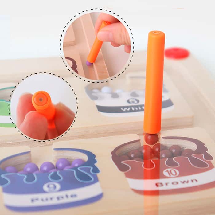 | V Balení: | 1x magnetická hračka s farebnými guľami a SortBoard, 1x stolová hra s doskou, postavičkami a kartami ShapeMatchingGame |