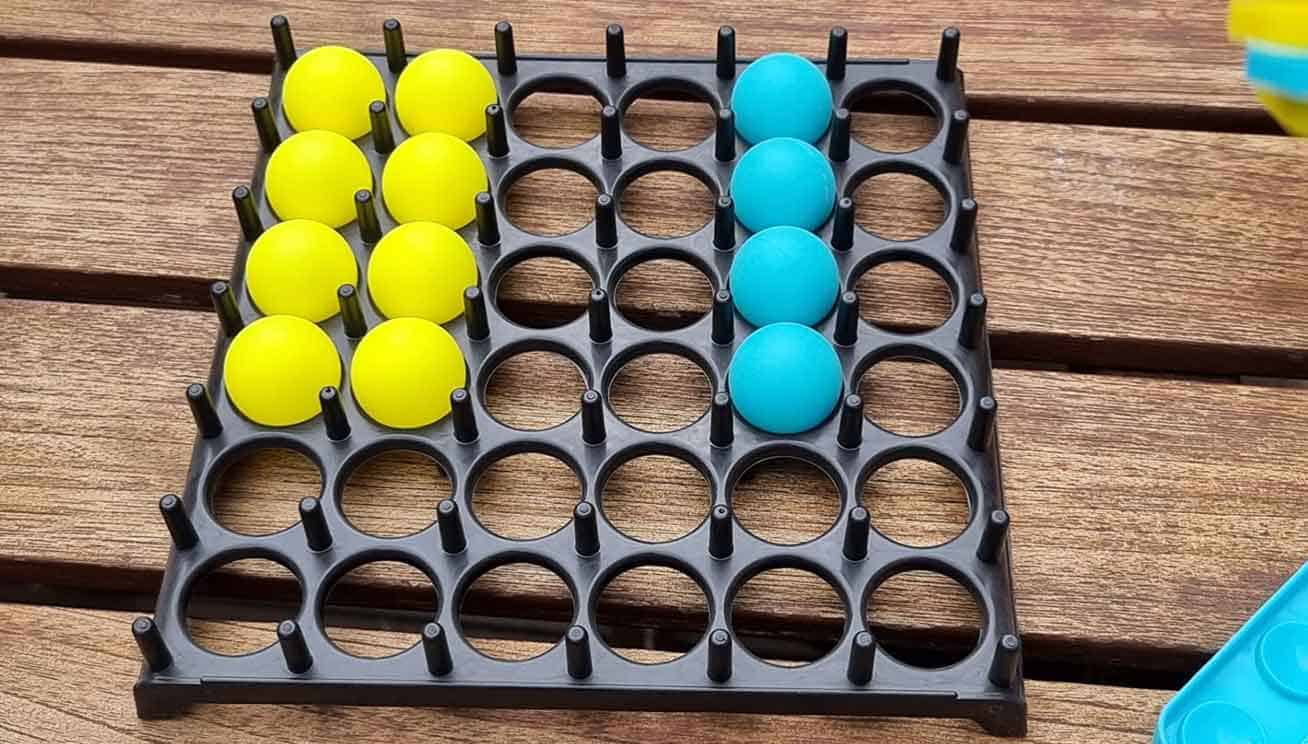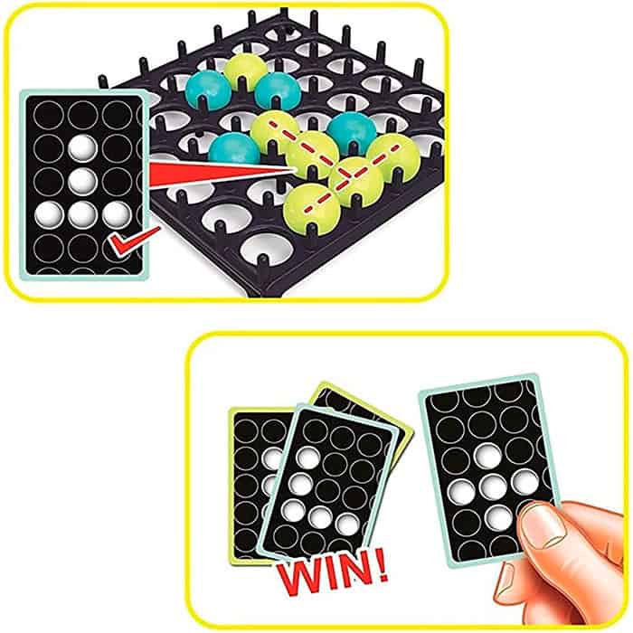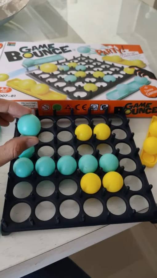 Sociálna hra pre 2 alebo viac hráčov. Rozdelte sa do 2 tímov, rozdeľte guľky rovnakej farby a položte karty na kôpku obrátenou stranou nahor. Prvý tím je vybraný náhodne a vyberie 1 kartu. Snažia sa vytvoriť vzor na karte s guľkami na hernom pláne. Guľka musí odrazit 1x od stola a potom dopadnúť na správnu pozíciu. Ak dopadne nesprávne, je na rade ďalší tím. Prvý tím, ktorý dokáže vytvoriť celý vzor, vyhráva.