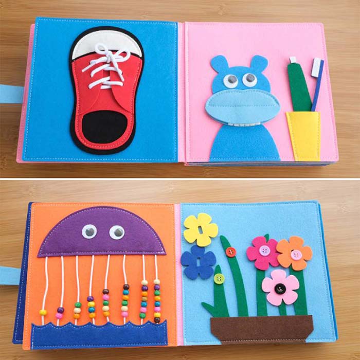 Tichá kniha je navrhnutá tak, aby sa dieťa mohlo aktívne hrať na každej strane!