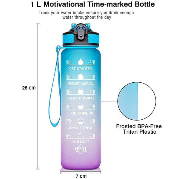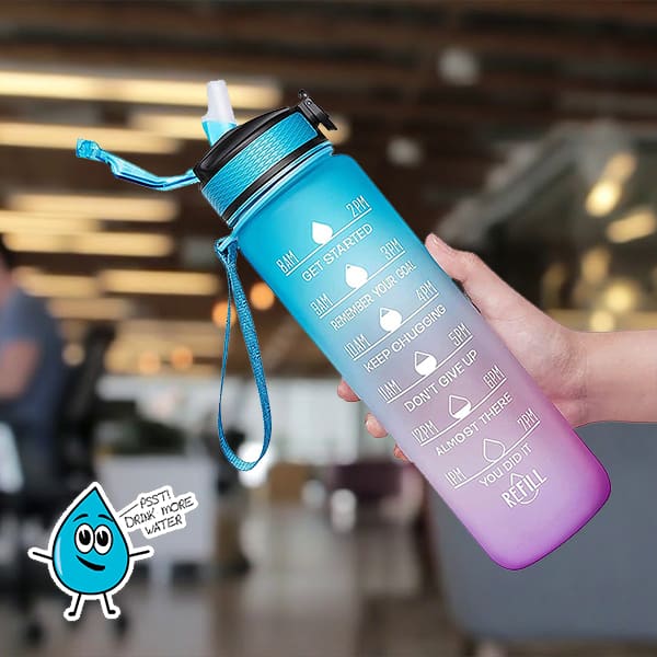 Patríte tiež medzi tých, ktorí pijú príliš málo vody denne? Potom je fľaša MotivationalBottle pre vás dokonalým riešením, pretože obsahuje motivačné verše na podporu pitia a časové značky pre rovnomernejšie pitie po celý deň.