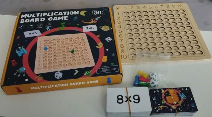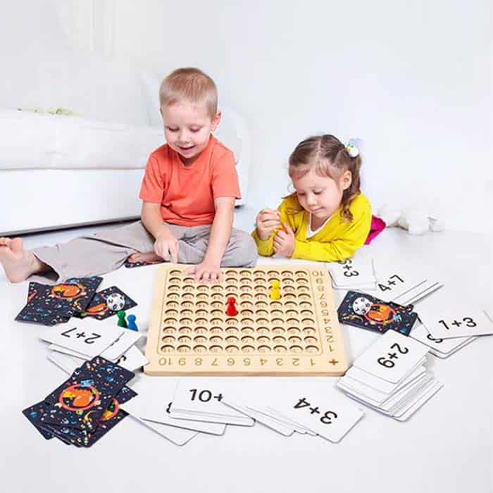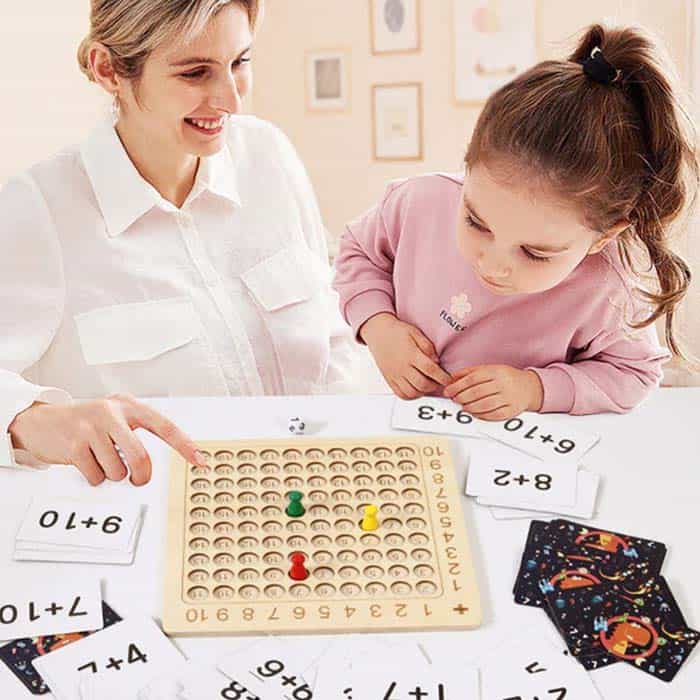 | Balenie Obsahuje: | 1x drevená doska s číslami | 4x figúrka | 2x kocka s číslami od 1 do 10 | 100x karta s rovnicami |