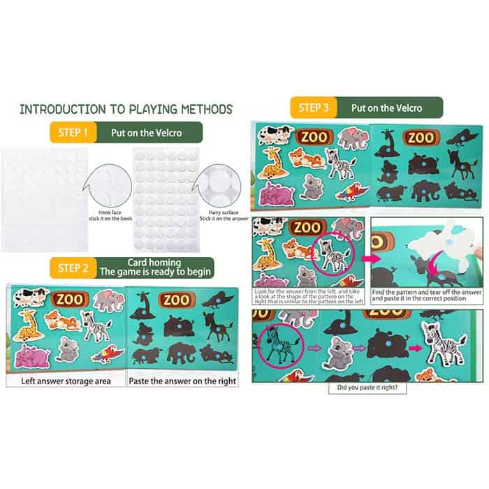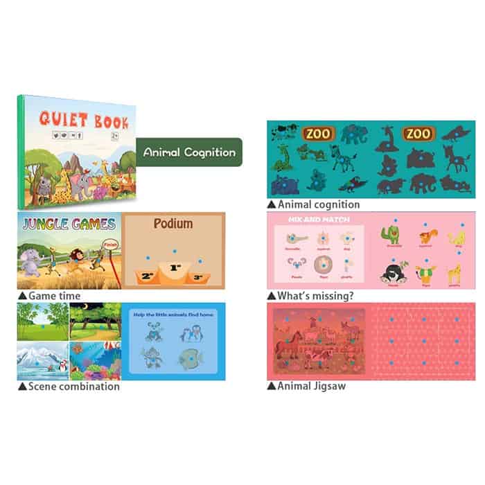 | Balenie Obsahuje: | 1x tichá kniha s pridanými kartónovými motívmi zvieratiek a suchými zipsami |