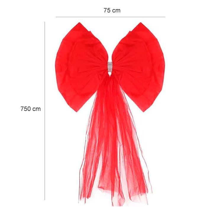 750 x 75 cm (celková dĺžka pásu mašle), 70 x 60 cm (približná konečná veľkosť mašle)