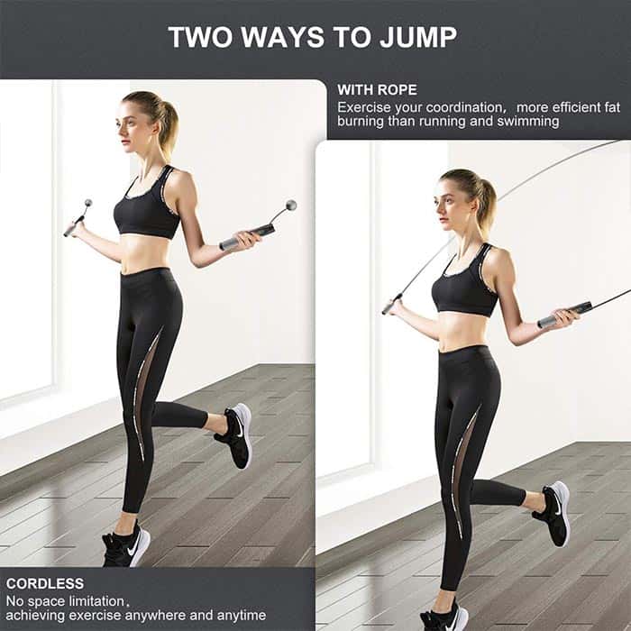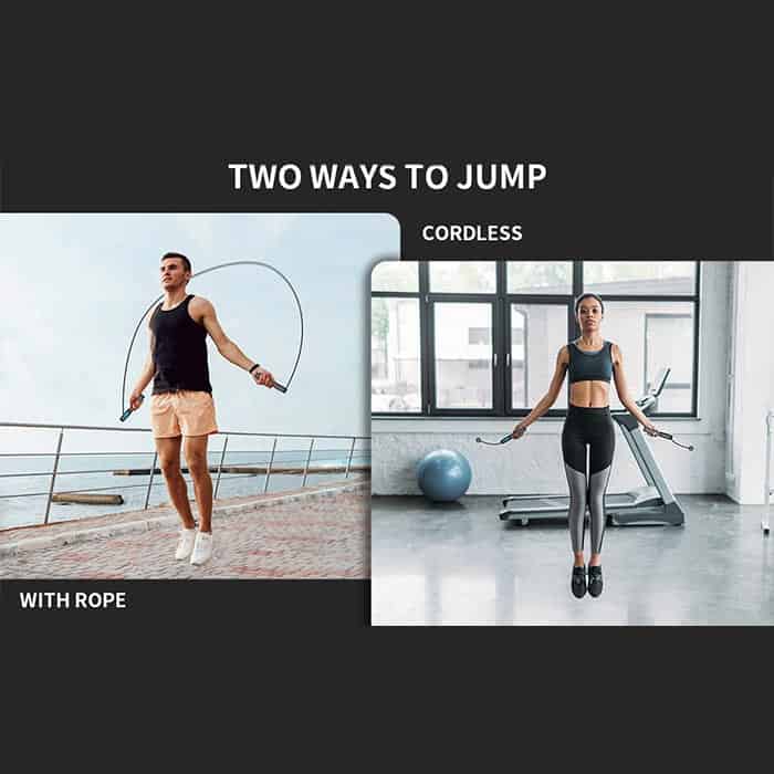 Skákanie so švihadlom je jedným z najintenzívnejších tréningov v oblasti spaľovania kalórií. 10 minút skákania so švihadlom je rovnakých ako 30 minút behu alebo plávania. Švihadlo SkippingRope má 4 možnosti: nastavenie váhy a času, ako aj meranie spotreby kalórií a počtu preskokov.Toto švihadlo má aj možnosť dvoch režimov skákania – s dlhším lanom alebo s kratším uchytením s loptičkami, takže ho môžete použiť kdekoľvek a kedykoľvek – v v prírode, v kancelárii, doma alebo v posilňovni!