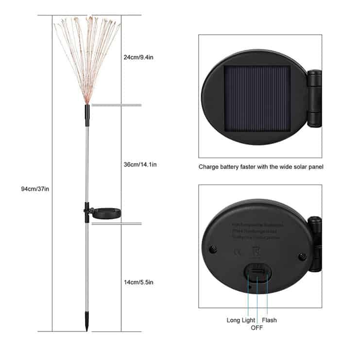 Nádherná solárna lampa má až 90 LED svetiel, ktoré dokonale rozžiaria vašu záhradu, dvor alebo terasu! Solárne svetlo sa nabíja len slnečnou energiou a funguje automaticky – cez deň sa nabíja a večer sa automaticky zapína!